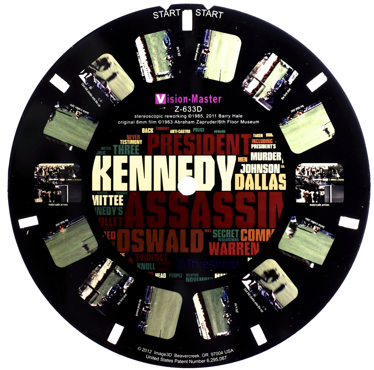 • Limited edition artists multiple featuring viewmaster style reel with 7 stereo pairs of the assassination of John. F. Kennedy taken from Abraham Zapruder's 8mm home movie. Contains 16 page colour booklet - limited to 100 hand numbered copies.